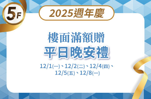 5F 2025週年慶樓面滿額贈 平日晚安禮